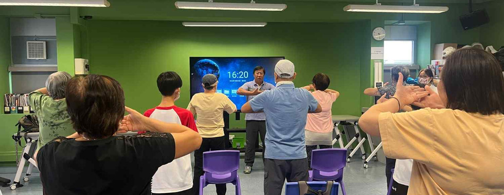 蕭師傅在課堂開始時,先向長者介紹了兩個簡單的健身動作,然後邀請了幾位同學示範正確的姿勢與技巧。